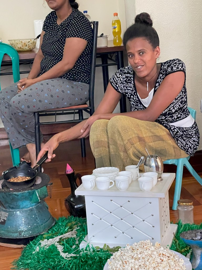 There is also a traditional coffee ceremony that is observed to welcome and honor guests. I got to participate in the coffee ceremony twice. It’s the process of roasting green coffee beans and then brewing them to drink in a special clay kettle before pouring them into small teacups. As a coffee aficionado, I loved every sip. I tried to drink as much coffee as I could because Ethiopia is considered the origin of coffee and I wanted to experience all that I could of it. Then again, I always try to drink as much coffee as I can, but I digress. I got to have the best espresso I’ve ever had in my life, and I think it cost about 90 cents. Yonas’ wife, Hana had one with me and she can attest to it, it was amazing. It’s also typical to serve popcorn with coffee. This was different for me, but the taste was complementary and delicious.